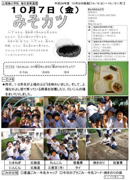 毎日食育通信:1・2年生が「上福のぶどう」を味わいました。