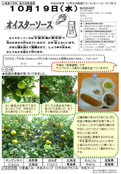 毎日食育通信:校庭の果樹が色づいてきました。