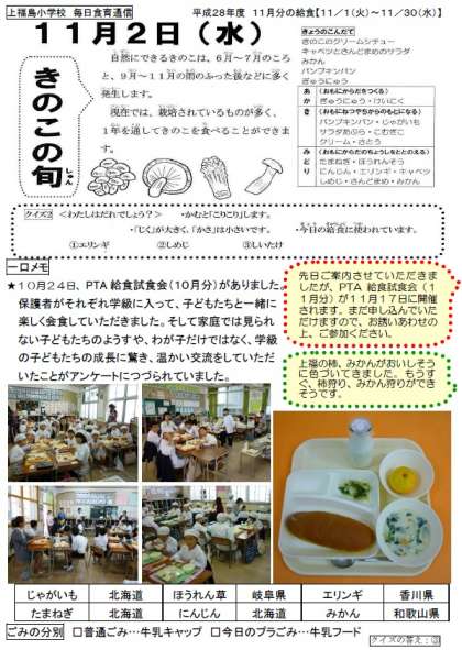 毎日食育通信:お誘い合わせてPTA給食試食会にお越しください。