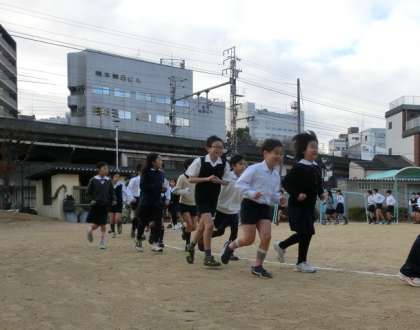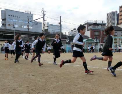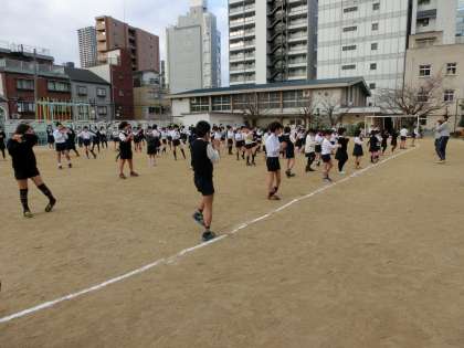 本日の児童集会は、1月31日の耐寒かけ足大会に向けてのかけ足集会でした。