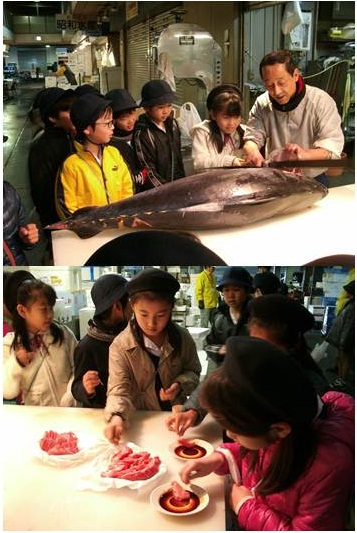 マグロの試食もさせていただき、新鮮なおいしさに子どもたちも大満足でした。