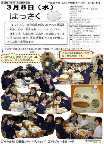 毎日食育通信:なかよし全開!5年生との「さよなら給食」。