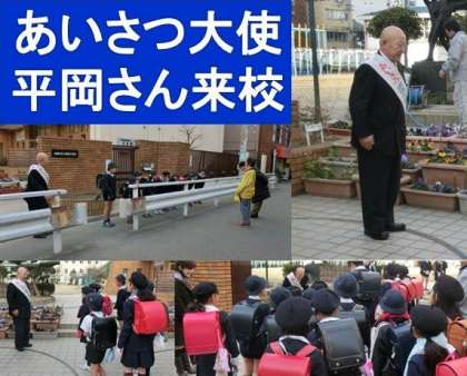 本日、登校時あいさつ大使の平岡さんが来校され、大きい声で子どもたちにあいさつをしてくださいました。平岡さんは、あいさつボランティアで全国各地をまわっておられます。平岡さんの元気で大きい声に、子どもたちも精一杯応えて、とても良いあいさつができていました。低学年の女の子が「また明日も来てね」と平岡さんに声をかけていました。子どもたちの心にも、大きく響いたのでしょう。あいさつは、一日を気持ちよくスタートさせる元気の源だと再認識しました。
