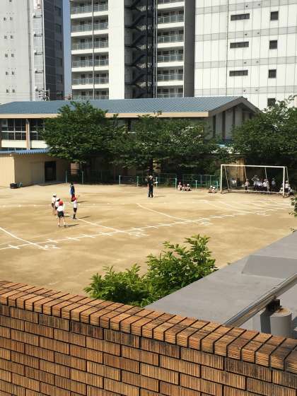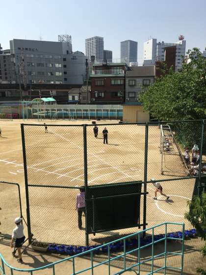 今日から新体力テストが始まりました。低学年のソフトボール投げの様子です。