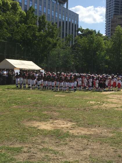 今日は福島区子ども会のソフトボール、キックベースの大会が下福島グランドで行われています。