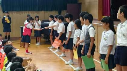 5月のたてわり遠足で行ったオリエンテーリングの表彰式が行われました。