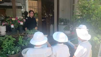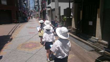 2年生が商店街たんけんに出かけました。学校の裏にある地元の商店街のお店に、グループでインタビューに行きました。タブレットで写真を撮って、教室で報告会をする予定です。