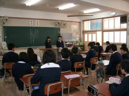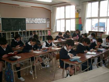 5年生はプリント学習に集中して取り組んでいました。6年生は卒業式に向けて「わかれの言葉」の練習をしていました。