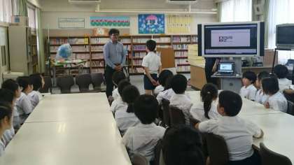 毎年、学校の敷地内にある学習園「上福島なかよし畑」で3年生、4年生が大阪の伝統野菜である玉造黒門越瓜を栽培しています。前年度、収穫したものを1年間かけて地域のお漬物屋さんが奈良漬にしてくださり、今日はその贈呈式がありました。