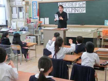 ニック先生との楽しい外国語活動で、児童もネイティブの発音にふれることができ、とてもよい経験になったと思います。