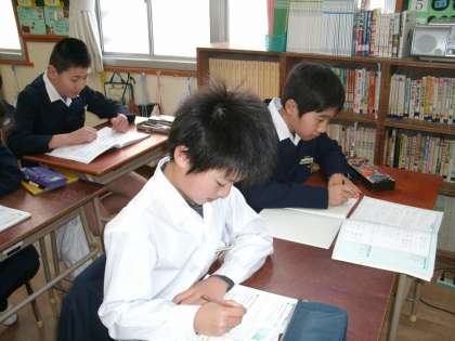 どちらの学年もドリルや問題集を使っての算数の学習に取り組んでいました。