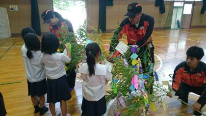 本校では、毎年、1、2年生がJRの七夕イベントに参加しています。今年も7月に入り、その季節がやって来ました。子どもたちは色とりどりの短冊に、思い思いに願い事を書きました。折り紙で飾り付けも作って笹飾りをしました。