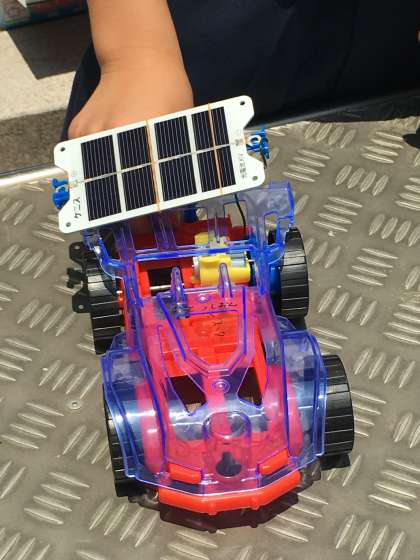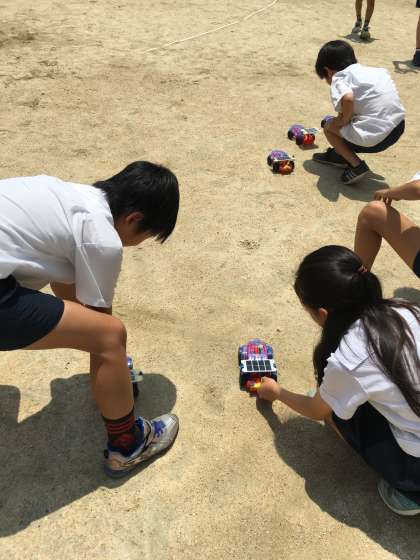 四年生の理科の学習でソーラーカーを走らせました。天気がいいので、とても速く走りました。