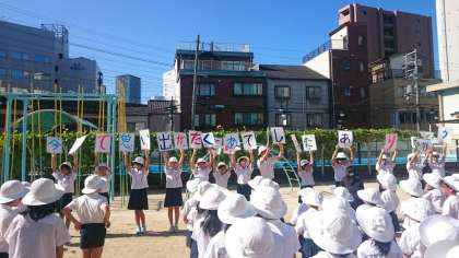 このあと、みんなで考えたメッセージをプールの壁に掲示します。
