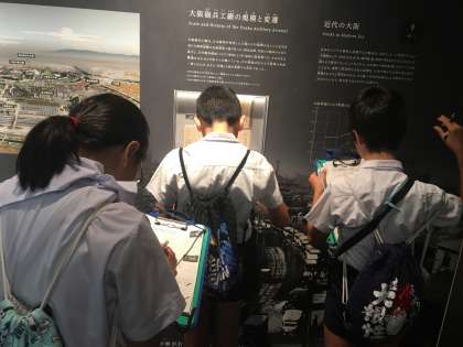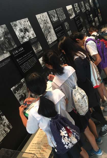 6年生はピース大阪に社会見学に出かけています。熱心にメモをとっています。