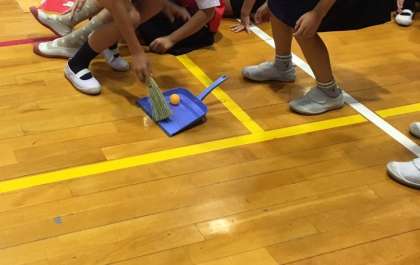 児童集会で、ピンポン玉レースをしました。集会委員会のメンバーが楽しいゲームをいろいろと考えてくれています。