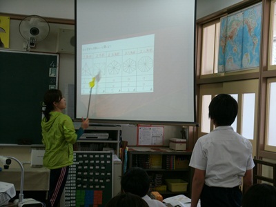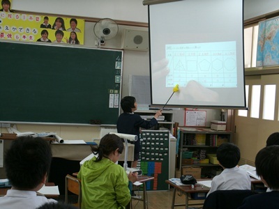 6年生の4月の算数では、実物投影機を使って「対称な図形」を学習しました。