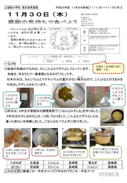 給食の和食はだしをとっています