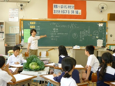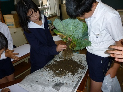 1時間目に3年生がキャベツを収穫しました。そして、5年生がそれを2,3時間目にスケッチしました。