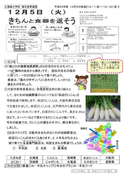 今日は「なにわの伝統野菜 田辺だいこん」を使用しました