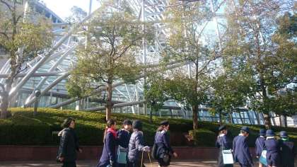 今日は毎年恒例の美術館鑑賞の日でした。全校で国立国際美術館に出かけました。美術館の中では、たてわり班になって鑑賞しました。鑑賞したあとに、全体で作品についての感想を出し合いました。
