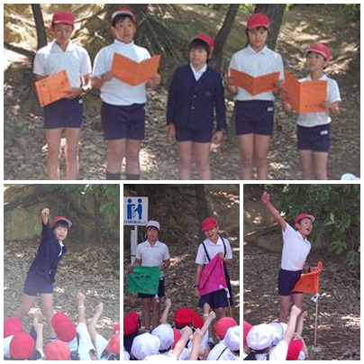 午前中は、プログラムの進行を6年生が立派に務めてくれました。出発の前には、班長さんが前で班の目標を発表し、みんなの士気を高めることができました。