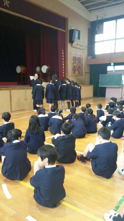 2つ目は、昨日、下福島グランドで行われた青少年指導杯で、上福島小のキックベースボースチームが見事、優勝しましたのでそのお披露目をしました。