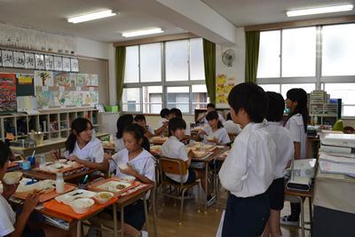 学級ごとに、全員で「かむかむメニュー」を30回噛んで食べたり、「歯みがきサンバ」に合わせて歯みがきをしたり、歯と口の健康カードの記入をしたりします。