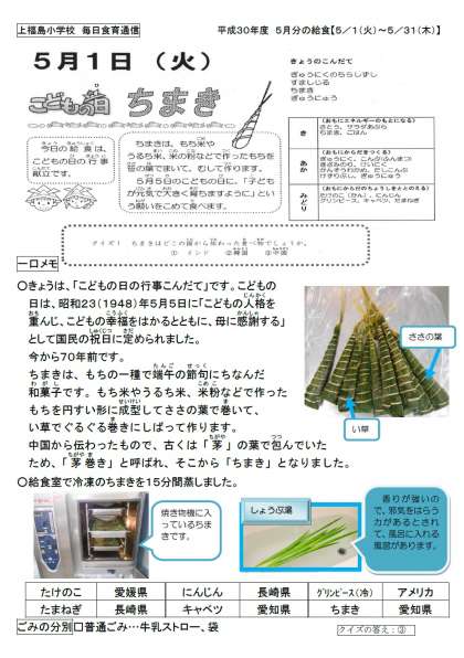 今日は「こどもの日の行事献立」です