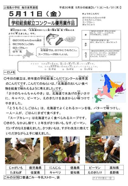 今日の給食は「学校給食献立コンクール優秀賞」の献立です