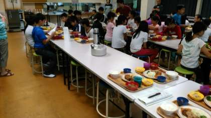 楽しかったキャンプファイアが終わり、夕食です。テキパキ用意が整いました。