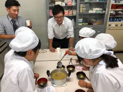 昨日、大阪鰹節青年團いろり会の方々に出汁の授業をしていただきました。鰹節を削る体験をして、鰹節と昆布といりこからとった出汁を使って、味噌汁を作りました。