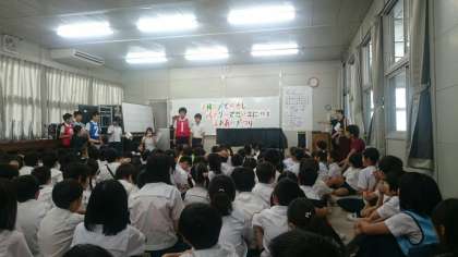 今日は土曜授業で上福島ふれあい祭りをしています。各クラスでお店を考えて出しました。