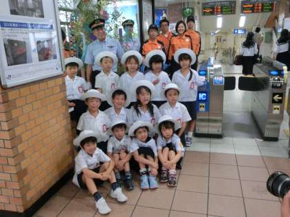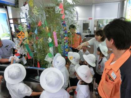 毎年、1年生と2年生がこの取り組みに参加させていただいています。たんざくに書かれたことばの中には、「電車の運転士になれますように」と書いていた子どももいたので、JR関係者の皆様もとても喜んでおられました。