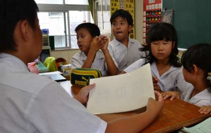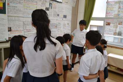 登校班で集まって、6年生を中心に集合場所・時刻の確認や、歩き方、並び方などを話し合って、集団下校しました。