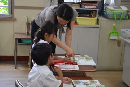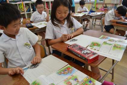 今回は、「ぼく、よびにいってくる」という資料をつかって、勇気について考えました。主人公ぽんすけの行為から心の迷いをとらえて、よいことと悪いことの区別をすることや、よいと思うことを進んですることの大切さを学びました。