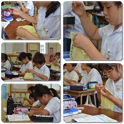 今日までに、なみ縫いや本返し縫い、ボタン付けなどの仕方を学習し、次回からはいよいよ小物づくりに挑戦です。
