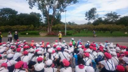 今日は天候が心配されましたが、全校で服部緑地に出かけています。