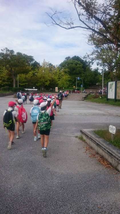 たてわり班に分かれて、さっそくオリエンテーリングに出かけました。
