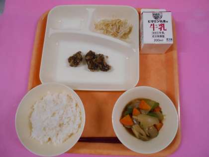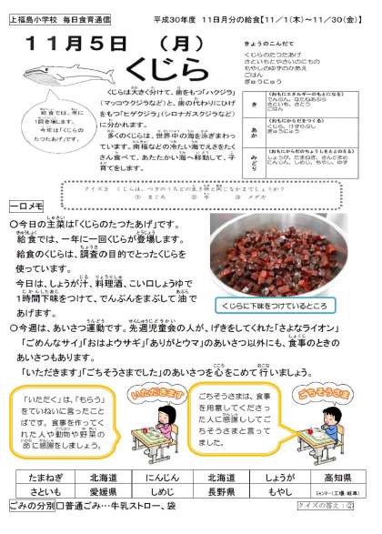 今日は一年に一回だけ使用できるくじらを使った献立です