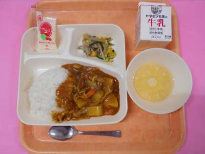 今日のカレーライスは「豚肉と金時豆のカレーライス」です