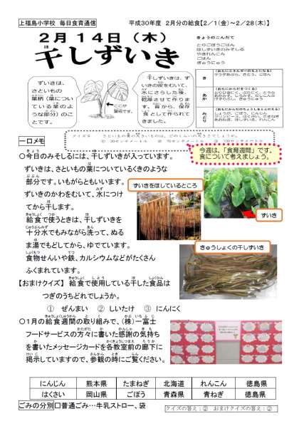 今日のみそ汁に「干しずいき」が入っています