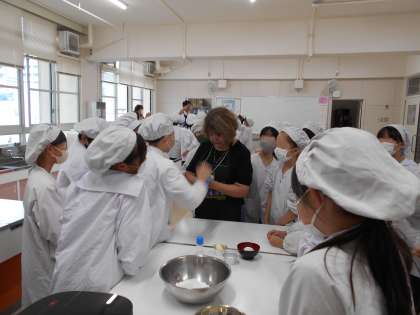 国際交流事業の一環で、5年生がボリビアの料理に挑戦しました。