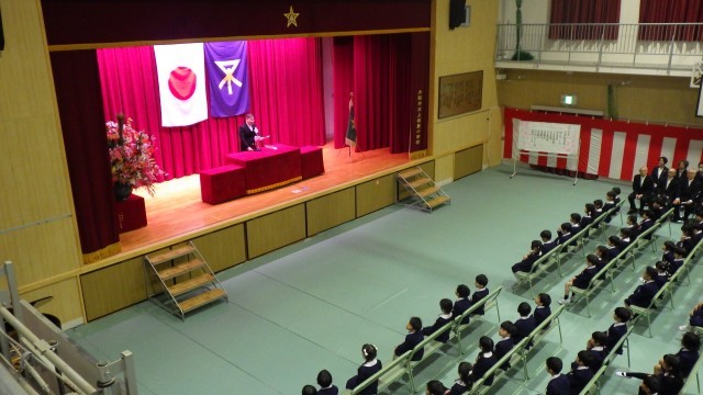入学式では、校長先生や来賓のみなさんに「ありがとうございます。」とお返事をしたり、