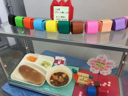 新年度の給食が昨日からはじまりました。はじめての給食にドキドキ、ワクワクの1年生。緊張している様子の児童もいましたが、おさつパンは大人気で、減らした児童の分をおかわりしたいという児童がたくさんいました。しばらくの期間は1年生の給食を6年生が早めに運んであげています。1年生のクラスが増えた上に、調理の仕上げを早くしてくださっているため、調理場は大忙し。でも1年生へのお祝いの気持ちを込めて、花形などのラッキーにんじんをビーフシチューに入れてくださっていました。