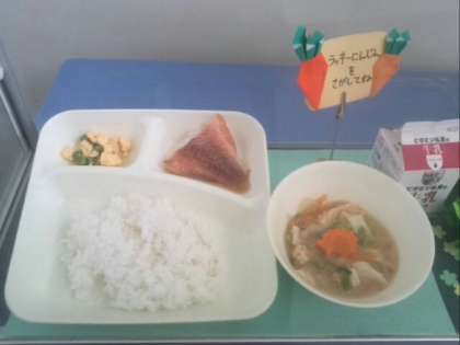 月曜日は豚丼に湯葉のすまし汁で、丁寧にとられただしの香りよい上品なお汁でした。豚丼にはかわいいトランプのクラブなどの形のラッキーにんじんが入っていました!昨日は旬のえんどうをたっぷり使い、卵とじにしたおかずが出ました。何百本もあるえんどうのさやをむくのが調理員さんにはたいへんな作業でしたが、子どもたちの中には、豆が苦手という児童が多く、たくさん残っているクラスもありました。残念です。赤魚のメニューは、人気がありました。金曜日は餃子の皮にチーズや具をのせて焼いた変わりピザが出ます。お楽しみに!