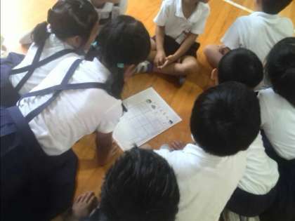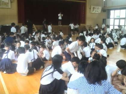 児童集会では、集会委員の高学年児童がリードし、「ドラえもんビンゴゲーム」にたてわり班で取り組みました。ビンゴした班は「やったー」と大喜び!楽しんでいました。