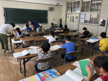 放課後の自主学習COCO(ココ)チャレンジ教室の夏休み版「夏COCO」が今年もはじまりました。子どもたちは、夏休みの宿題や自分で持ってきた課題にそれぞれ取り組んでいます。