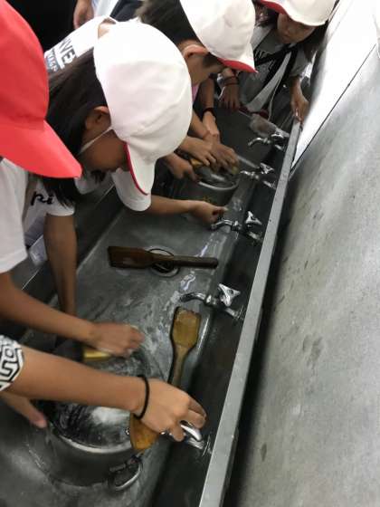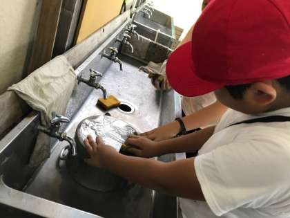 食べた後は、念入りに片付けです。来た時よりも美しく、みんなで協力して活動しています。