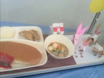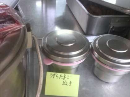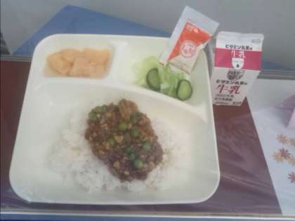昨日はひきわりタイプの大豆が入ったキーマカレーライスに桃の缶詰がつきました。今日はあげギョウザに旬の果物のなしがつき、中華煮の中にはうずら卵が入っていましたが、卵のアレルギーがある児童には除去食が出されました。材料の配送が遅れたものもありましたが、なしの皮まですべてきれいにむいていただき、食べやすかったです。